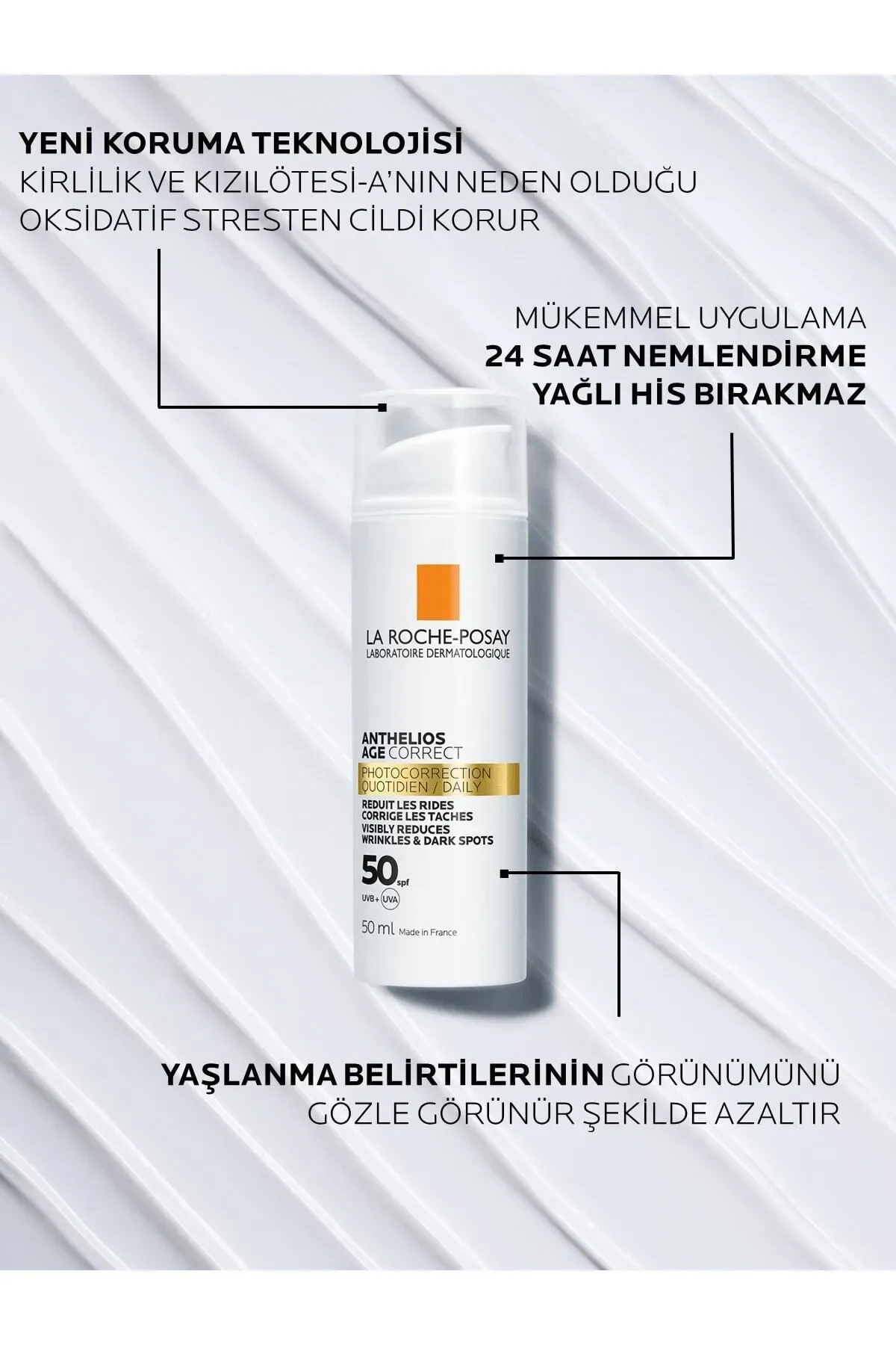 La Roche; Posay Anthelios Age Correct SPF50+ Uv Kaynaklı Leke ve Kırışıklık Karşıtı; 50ml;